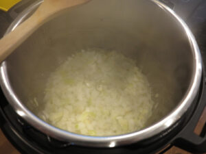 - Saute chopped garlic and onion for about 5 minutes. For an oil free dish, use a little bit of water.