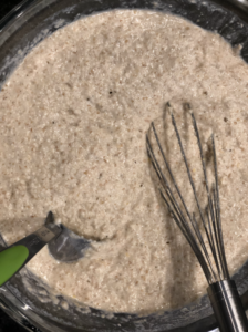 - Add the flaxseed/water mixture and milk mixture to the dry bowl and mix.