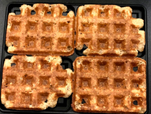 - Add to your waffle maker ¼ cup (approx. 60 ml) mixture for each waffle. Please see the instructions of your waffle maker regarding cook time. For the Cuisinart Griddler, set on 380 F and cook for five minutes.