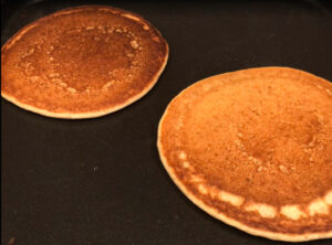 - Pour β cup (~120 ml) batter onto the griddle and cook for about two minutes on one side. Flip and cook for another minute or so until golden brown.