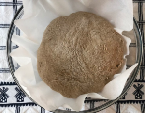 - Take a clean bowl and place a sheet of parchment paper in the bowl. Place the dough on the parchment paper in the bowl (folding facing down).