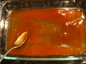 - Mix the enchilada sauce with 8 fl. oz (~236 ml) water and coat the bottom of the casserole dish.