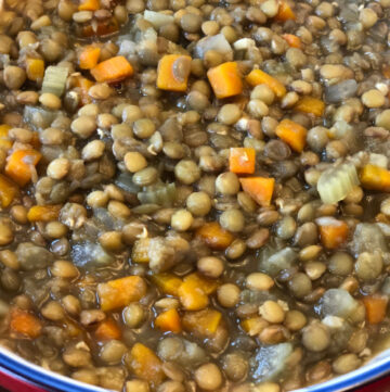 - Add the lentils and the rest of the water to the pot and simmer for about 25 minutes or until the lentils are tender.