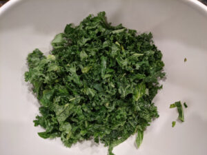 - Add the pistachios, garbanzo beans, raisins and potatoes to the kale bowl.